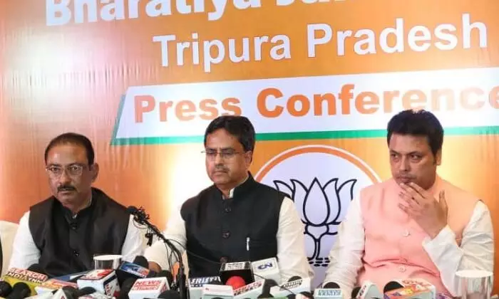 Agartala, Mar 5: BJP's chief troubleshooter in the Northeast, Himanta Biswa Sarma, was believed to have been sent to Tripura to end "factionalism" within the local unit of the party to enable a consensus candidate for the chief minister's post. While Manik Saha, the outgoing chief minister, is favored by one section, another, which includes former CM Biplab Deb's supporters, is believed to have plumbed for Union minister Pratima Bhowmik, according to party sources. A meeting of the newly elected BJP MLAs to select the legislative party leader will be held but the date is yet to be fixed, a senior party leader said.