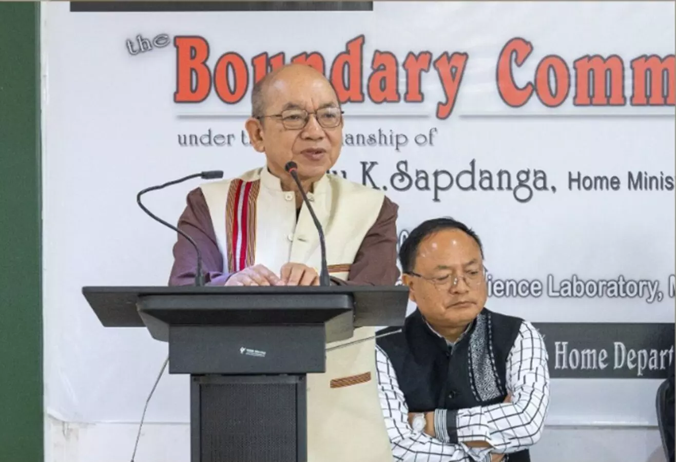 Home Minister Sapdanga addressing the State Boundary Committee meeting, on Wednesday. (Photo:@DDNewsMizoram/X)