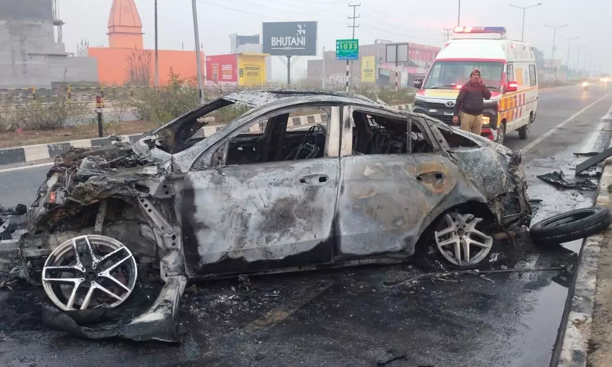 According to witnesses, Rishabh's car collided with the railing and caught fire.