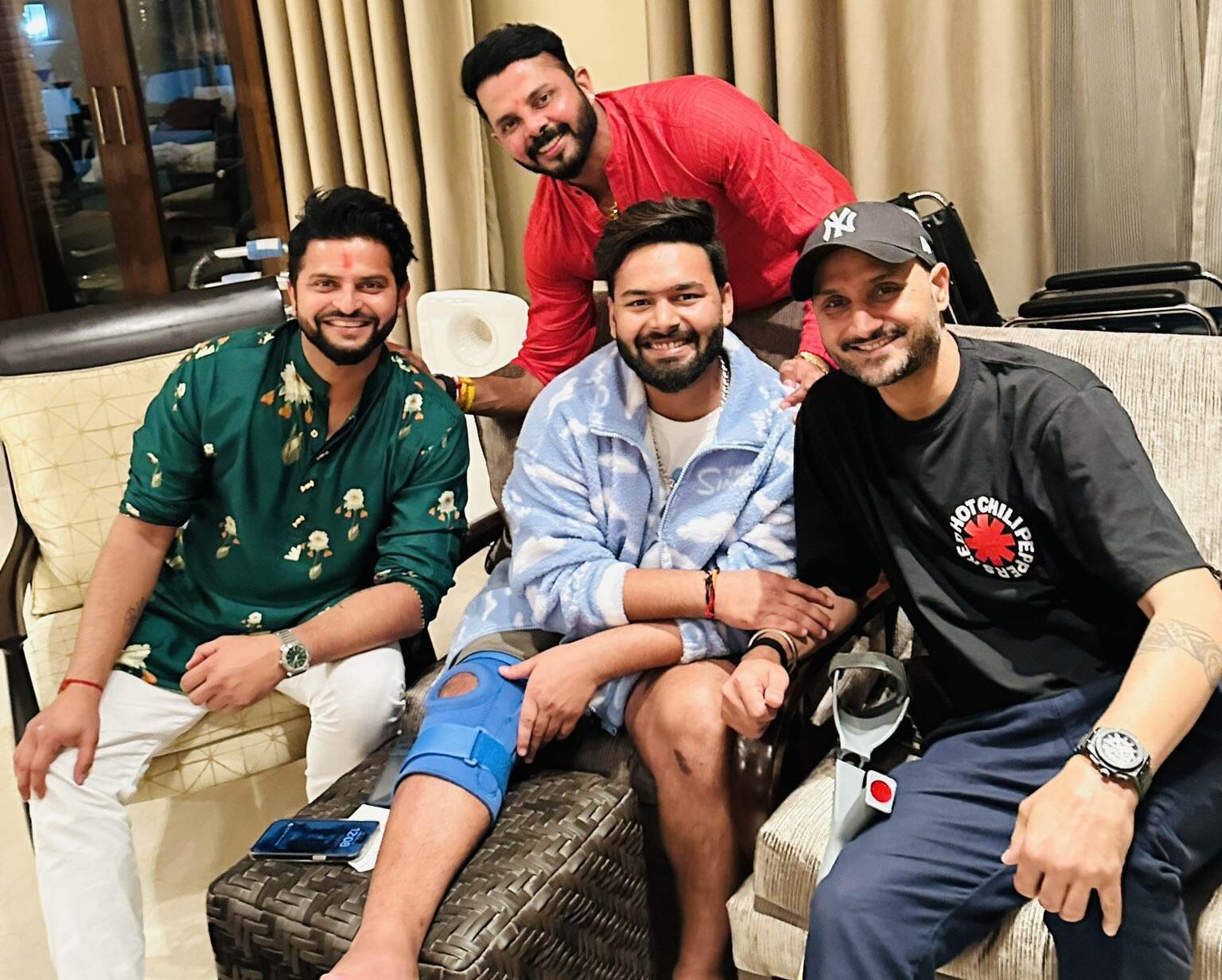 New Delhi, March 26: Former Indian cricketers Suresh Raina, Harbhajan Singh and S. Sreesanth met wicketkeeper-batter Rishabh Pant, who is recovering from injuries sustained in a horrific car accident last year.