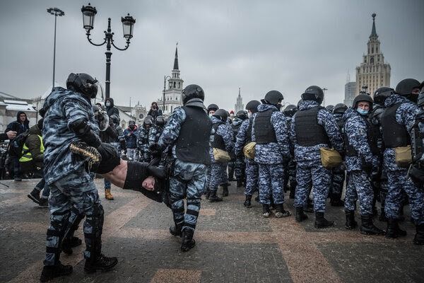 The police were out in large numbers in dozens of cities and towns across Russia on Sunday as tens of thousands took to the streets to show support for the jailed opposition leader Aleksei Navalny. It was one of the most imposing shows of police force seen in the country’s recent history.