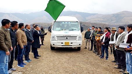 ITANAGAR, Jan 24: Arunachal Pradesh Assembly Speaker Pasang Dorjee Sona today flagged off APSTS (Arunachal Pradesh State Transport Services) bus service between Mechukha and Aalo in the presence of Shi-Yomi Deputy Commissioner Mito Dirchi, the heads of departments and local Panchayat leaders.